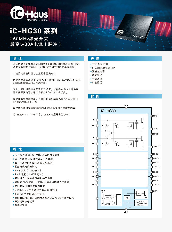 250MHz激光开关,最高达30A电流(脉冲)!—iC-HG30系列(IC-HAUS)