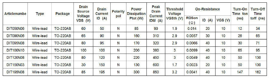 TO-220AB(DIT050N06,DIT090N06,DIT095N08,DIT100N10,DIT120N08,DIT150N03,DIT195N08)