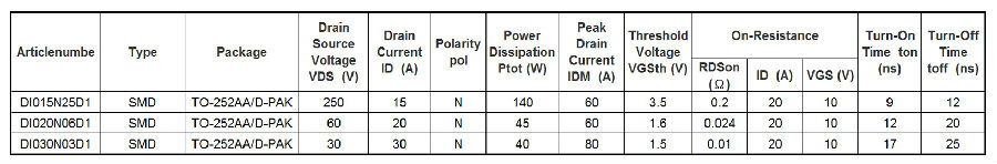 TO-252AA/D-PAK(DI015N25D1,DI020N06D1,DI030N03D1)