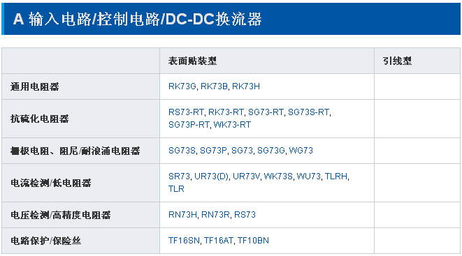 電流檢測/低電阻器 | UR73(D), UR73V, WK73S, WU73, TLRH, TLR, SL, SLN | |