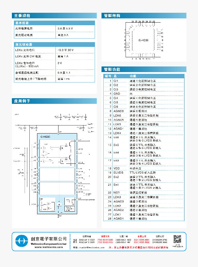 250MHz激光開關,最高達30A電流(脈衝)!—iC-HG30系列(IC-HAUS)